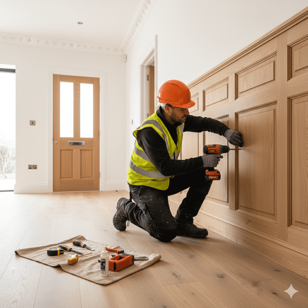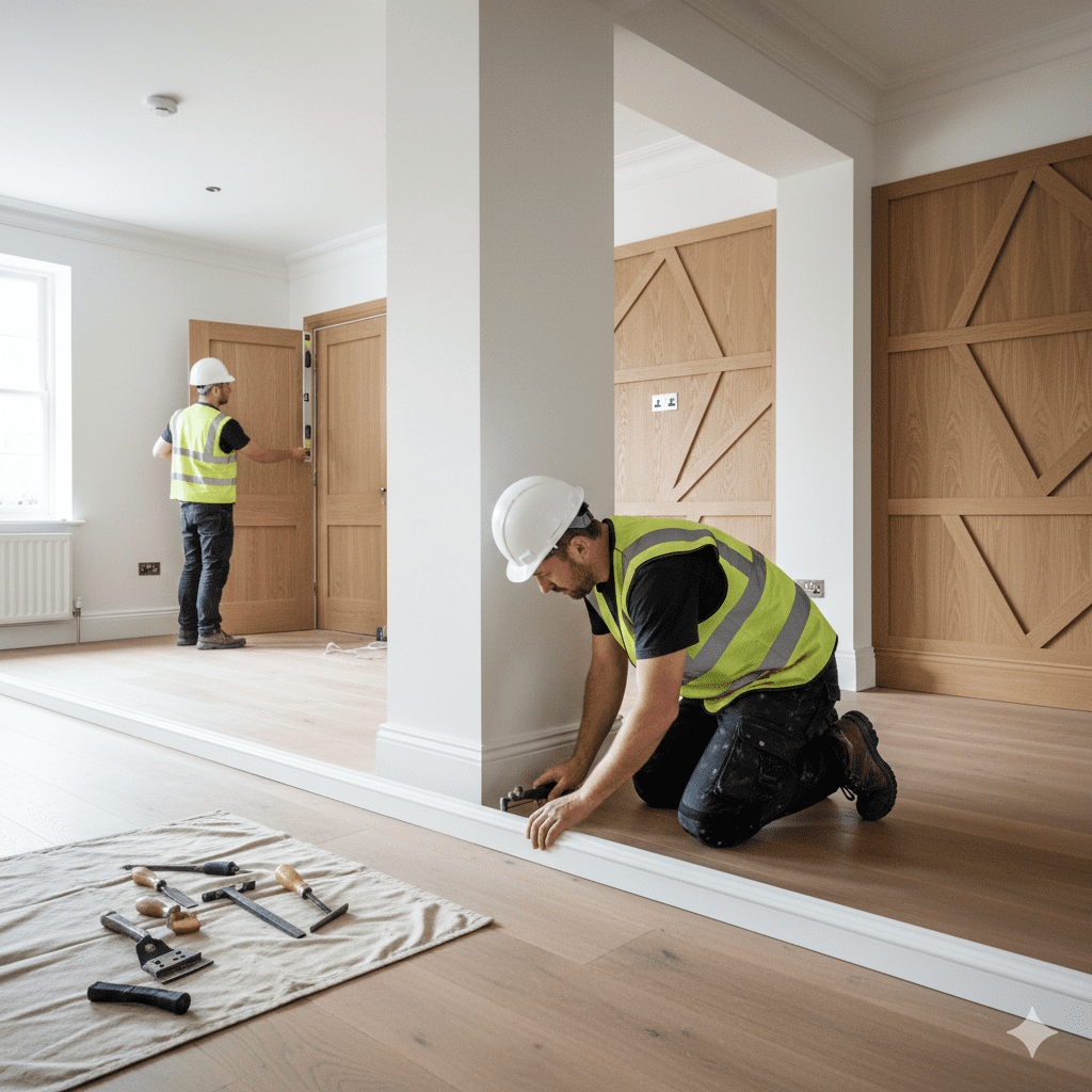 Decorative Timber Features: We specialise in the installation of intricate crown mouldings and bespoke wall panelling, adding immediate character and a high-end architectural feel to any room.